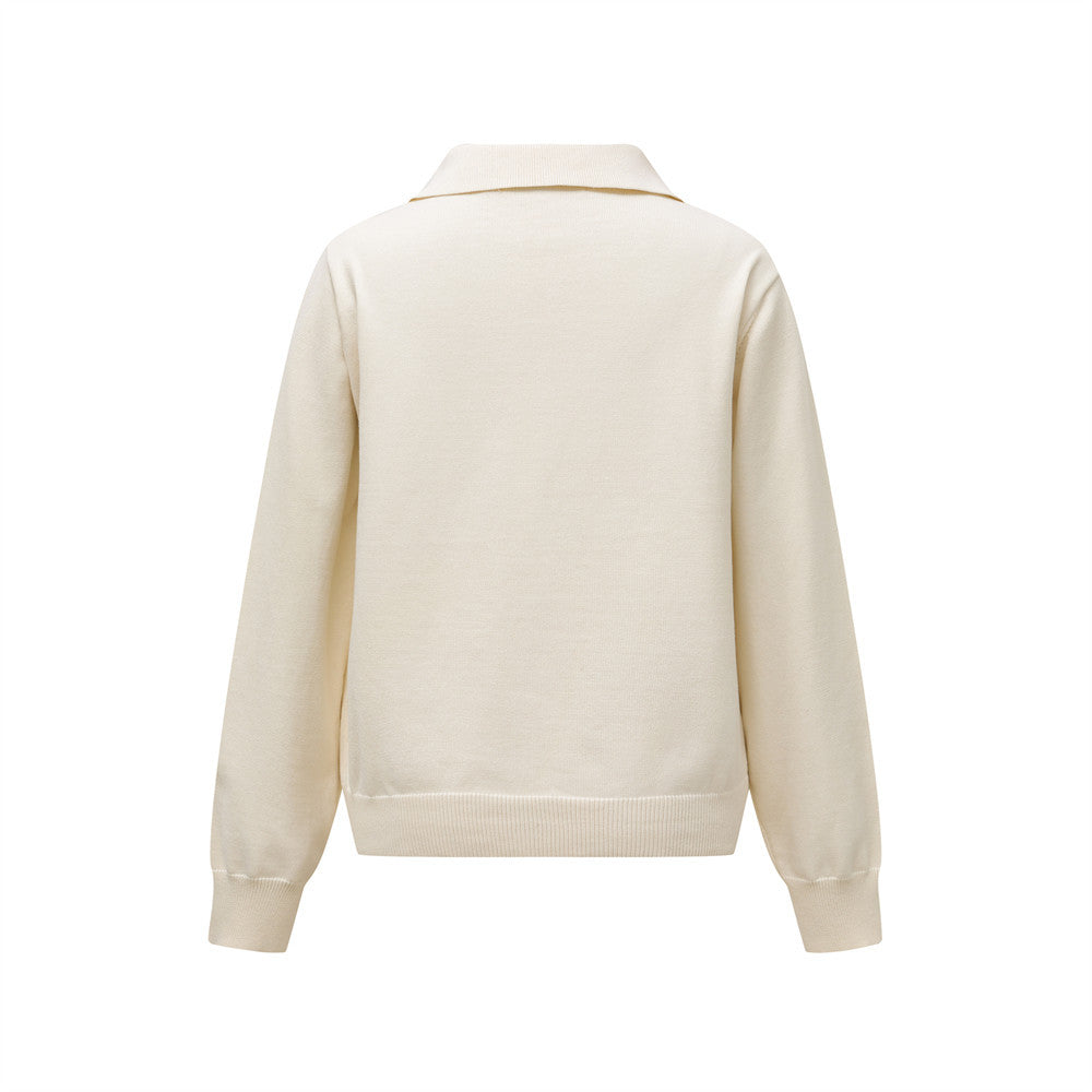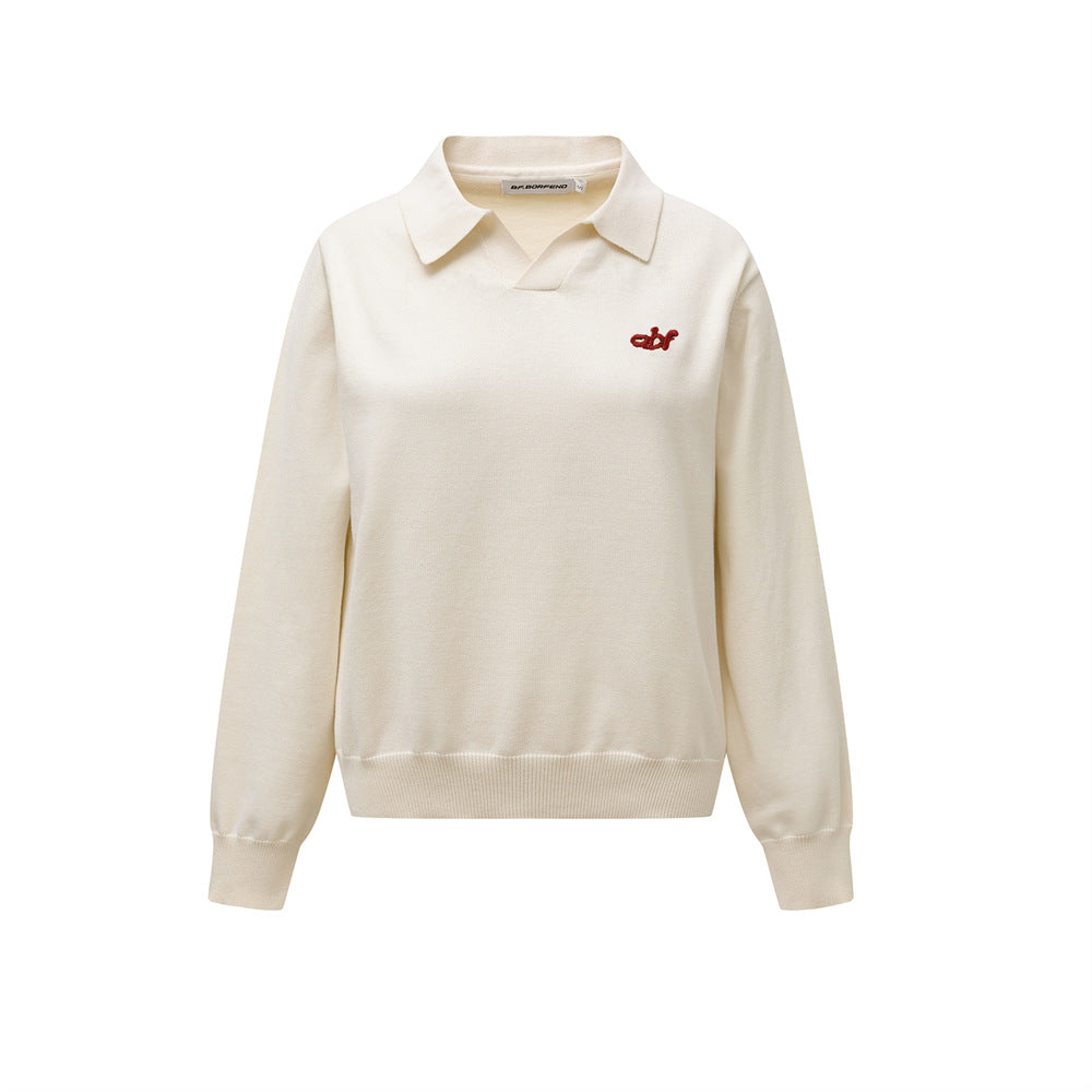 Knitted Sweater with Tie for Women Loose Casual Long Sleeve Collar Sweater